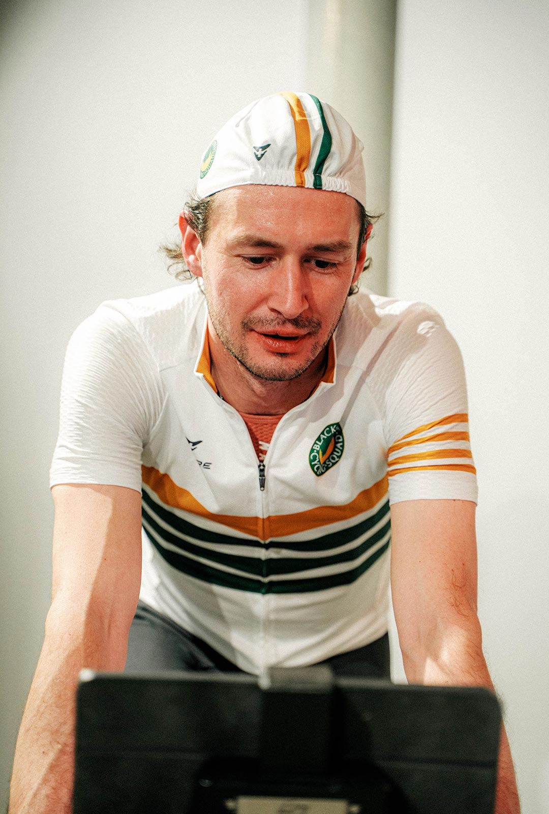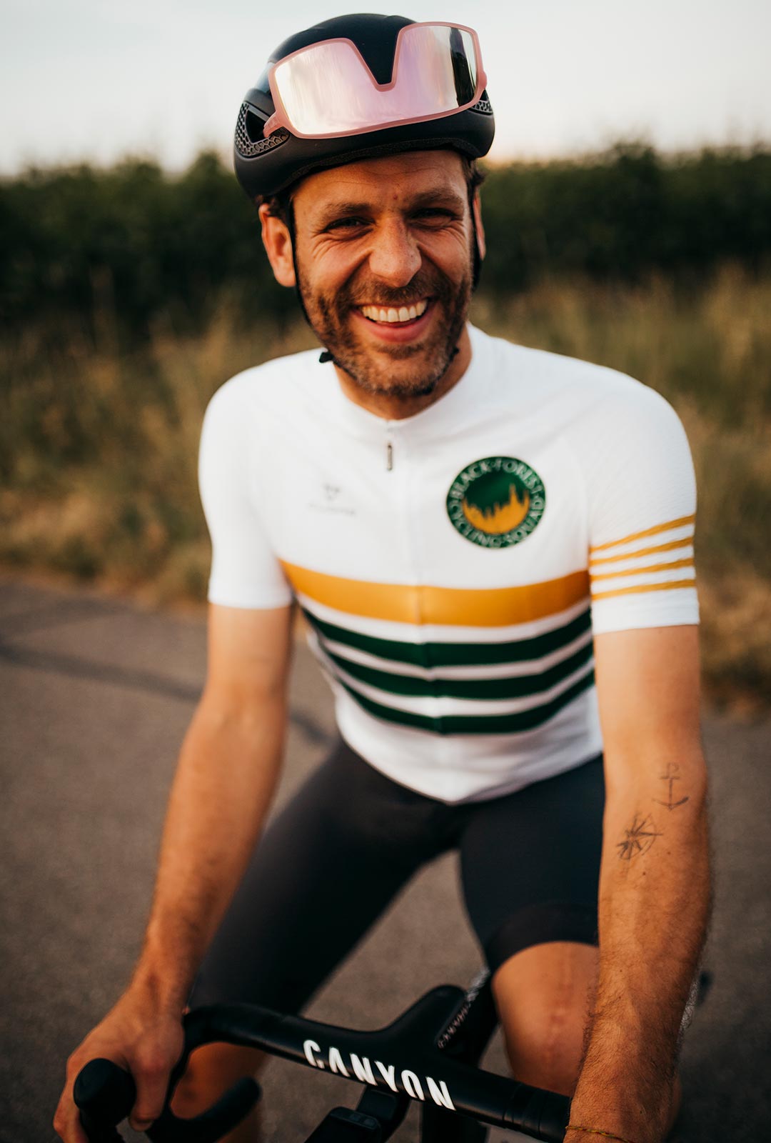 Er ist DIE Wattmaschine im Team, peilt dieses Jahr eine Spitzenleistung von 1.500 Watt an und fliegt am liebsten in all white auf seinem Canyon Aeroad die Berge hier im Schwarzwald hoch. Aber auch verrückte Aktionen mit 300km und wenig Gesprächen gehören bei ihm ins Programm.